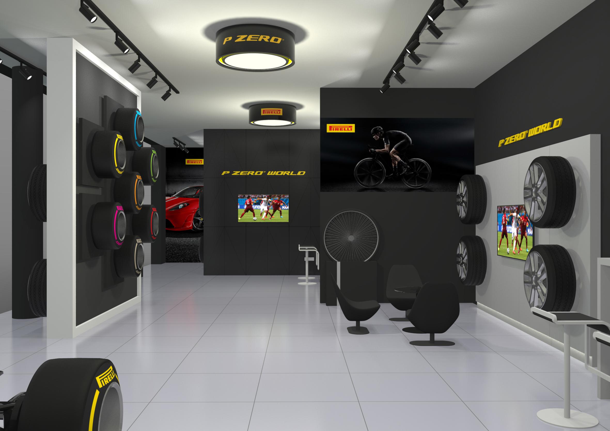 Creating a retail branding experience for a global brand like Pirelli required attention to detail and adherence to their international standards. The challenge was to transform the building into an immersive brand space, reflecting Pirelli’s international standards and heritage while incorporating innovative design elements to captivate the target audience. The project also demanded strategic uses of the showroom’s large space, including the reception, office, and exhibit areas.